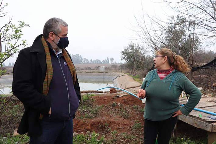 Erika González, del sector Villa Manantiales de Litueche, también recibió la visita del director regional de INDAP, Juan Carol García, y del alcalde René Acuña. Esta pequeña agricultora es usuaria del Prodesal y tiene potencial de crecimiento, por lo que podría migrar al programa SAT, donde recibiría una asesoría especializada. Tiene una masa ganadera y una plantación de paltos, con sistema de riego por goteo y con acumulador de agua (mini tranque).
