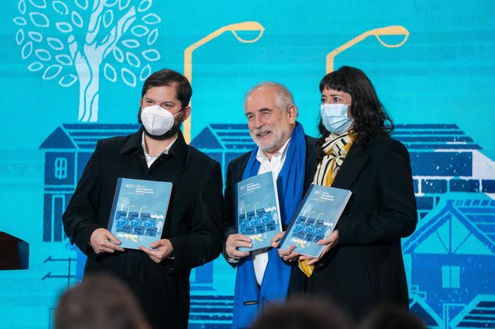 El Presidente de la República, Gabriel Boric, junto al ministro de Vivienda y Urbanismo, Carlos Montes, y la subsecretaria de la cartera, Tatiana Rojas, presentó el “Plan de Emergencia Habitacional”, estrategia desarrollada por el Minvu para abordar con sentido de urgencia el déficit de viviendas que presenta nuestro país y que es parte de la nueva Ley de Integración Social y Urbana, aprobada por el Congreso en marzo pasado. Entre sus principales objetivos está recuperar el rol central del Estado en la planificación y gestión habitacional, junto con entregar 260 mil viviendas durante el periodo de gobierno, lo que lograría cubrir al menos el 40% de la necesidad habitacional identificada.
