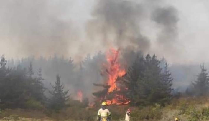 Por causas que se investigan se originó en esa zona rural de la provincia de Cardenal Caro un devastador incendio que rápidamente se propagó producto del fuerte viento reinante en el lugar llegando a consumir más de 35 hectáreas de plantaciones de pino y pastizales.