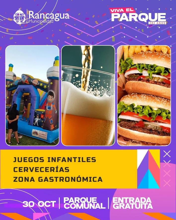 En el marco del aniversario número 282 de Rancagua, la Municipalidad invita a toda la comunidad a participar en una jornada especial de celebración este jueves 30 de octubre desde las 17:00 horas en el Parque Comunal.