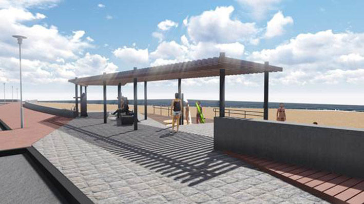 Por su parte Pichilemu, en La Puntilla y Caletilla, cubrirá áreas de 240 y 340 metros cuadrados, respectivamente, y contará con similares características, pero agregando un sistema de protección para el viento suroeste, señalética para evacuación, bicicleteros, espacio para lockers y un sendero de acceso a la arena.