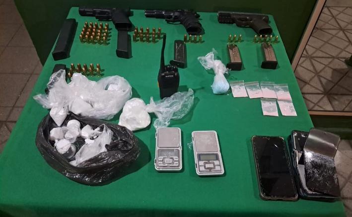 Durante el ingreso al domicilio también se encontró armamento, el cual fue recuperado.  Entre ellos se encuentra una pistola sin inscripción; otra arma similar, que mantiene encargo vigente por robo en lugar no habitado y una tercera pistola, que mantiene encargo vigente por robo a una armería en la comuna de Rancagua.