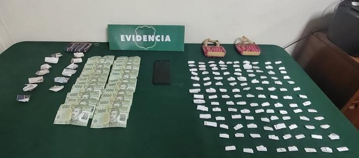 Al ser fiscalizados y revisado el vehículo se encontró droga, correspondiente a 121 envoltorios de clorhidrato de cocaína y 13 de marihuana.