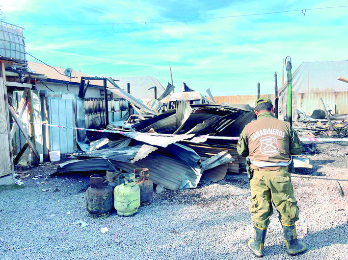 Por instrucción del fiscal de turno, un equipo especializado del Laboratorio de Criminalística de la Prefectura de Carabineros Cachapoal, LABOCAR, se encuentra investigando el gigantesco incendio que el fin de semana se declaró en una vivienda tipo cité de la comuna de Palmilla y que dejó un total de 53 personas damnificadas, la mayoría de nacionalidad boliviana.